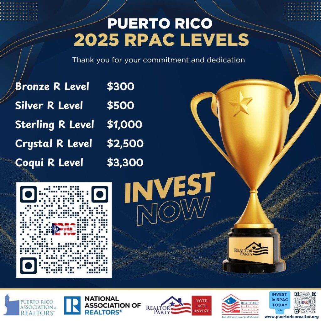 As a political action committee of the Puerto Rico Association of Realtors® (PRAR), the RPAC receives contributions from members of the PRAR who wish to support its mission of promoting policies and laws favorable to the real estate sector in Puerto Rico.